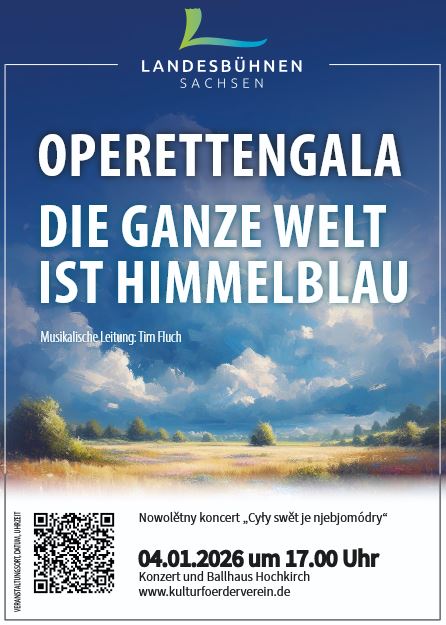 - Kurzbeschreibung Der Kulturförderverein Hochkirch lädt herzlich zum Neujahrskonzert „DIE GANZE WELT IST HIMMELBLAU“ am 4. Januar 2026 im Konzert- und Ballhaus Hochkirch ein.